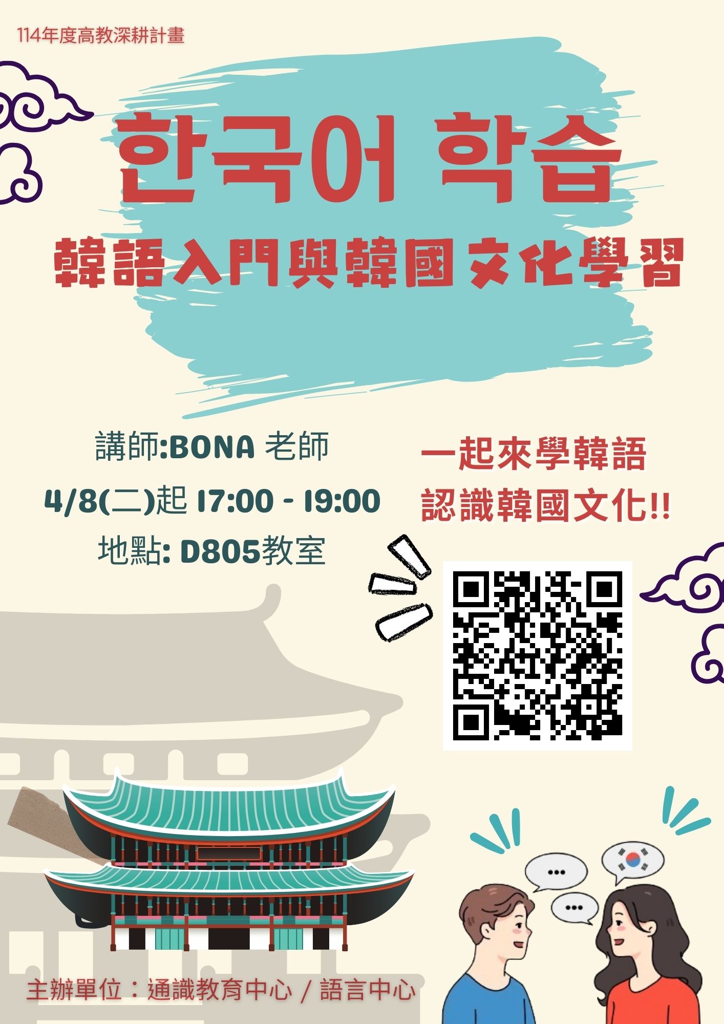 | 活動名稱 | 114年韓語入門及韓國文化課程 |