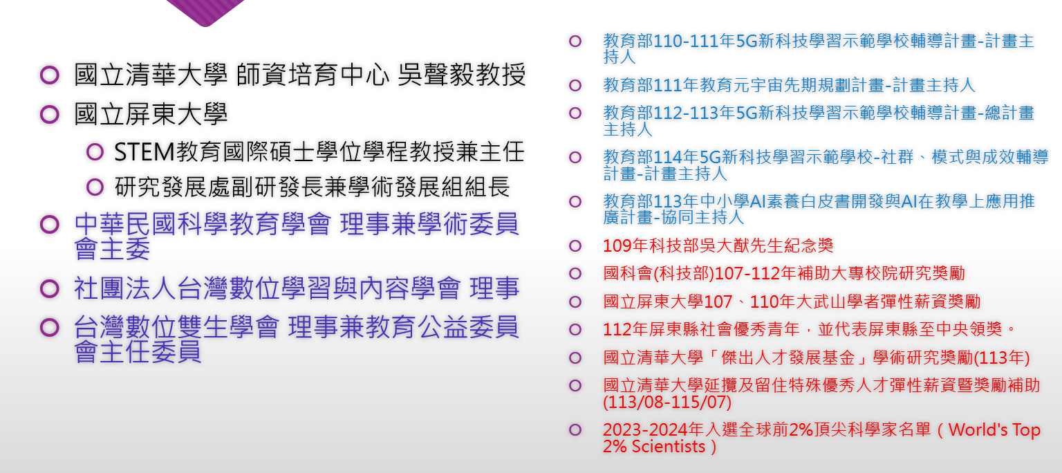 | 活動內容 | AI不只是科技,更是教學創新的新助力! 本場工作坊邀請國立清華大學 吳聲毅教授,結合其在5G教育應用、AI素養與教育元宇宙的豐富實戰經驗,帶您掌握AI Prompt設計的核心概念,探索AI如何融入教學現場,成為老師與學生的智慧夥伴! 🧠透過實作、交流與應用,學員將學會設計專屬教學場域的AI提示語(Prompt),擴展學習深度與廣度。 📌完成課程後,需繳交一則結合護理專業領域的AI教學提示語(Prompt),方可取得研習時數。 💡從教育現場出發,設計屬於你的AI語言,現在就報名參加! |